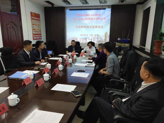 5月21日下午,在哈密伊州區(qū)政府會議室,董事長雷宗平與伊州區(qū)代表區(qū)委副書記、區(qū)長阿曼·買買提,簽署光伏應(yīng)用產(chǎn)業(yè)園建設(shè)項(xiàng)目合作框架協(xié)議,雙方擬展開深入合作,共同推進(jìn)產(chǎn)業(yè)園建設(shè)進(jìn)程。
