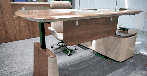 “它不并是一個單品, 與其配套的還有一個班臺,這個班臺也是 可以通過遙控或者是語音,實現升降功能?!?/p>