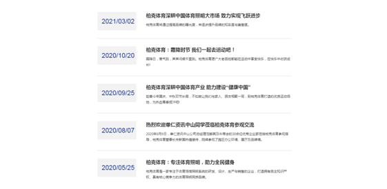 品牌官網設置新聞資訊板塊,囊獲企業新聞、行業資訊等實時信息,助力網友更好地掌握柏克體育近期發展現狀及體育行業發展趨勢,將最新動態“一網打盡”。