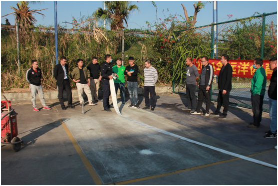 此外,中山市東鳳鎮和平村委消防人員向遠洋體育群體員工講解了消防水帶的使用方法及收納方式,還仔細演示了消防水帶的拋帶、放水及收納過程。他們強調:“消防演習工作是非常重要的一件事,只有通過常態化學習、演練,熟練了解、掌握消防知識,才能在面對火災現場的危急時刻泰然處之,避免人員及財產的重大損失。”說完,消防人員便讓員工們現場進行實操練習,將理論付諸于行動。