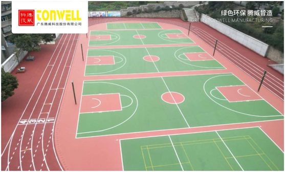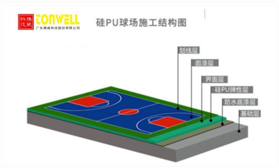 騰威環(huán)保硅PU原材料和核心技術(shù)由德國引進(jìn),不僅滿足各類彈性運動場地要求的物理性能和新國標(biāo)環(huán)保要求,更在快速鋪裝施工方面,能給施工商提高更高的效率和周期。可厚涂、不鼓包、無需界面劑、高附著、高耐候等優(yōu)異性能,直接降低工程成本、提高工程利潤。可耐洗刷新性超過5000次無明顯變化,提供色澤艷絢麗持久的水性、油性高耐磨面漆供選擇。可滿足不同客戶的個性化設(shè)計方案、需求,其易施工、易維護(hù)的特性為體育場館施工商在不同氣候環(huán)境下施工鋪裝帶來極佳的鋪裝體驗。
