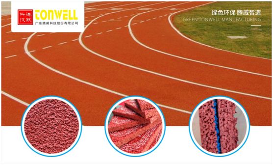 騰威科技研發(fā)生產(chǎn)的“耐奧騰”品牌EPDM橡膠顆粒和PU膠粘劑,廣泛應(yīng)用于新國標(biāo)混合型塑膠跑道、新國標(biāo)透氣型跑道、EPDM地面以及彈性透氣健身步道。