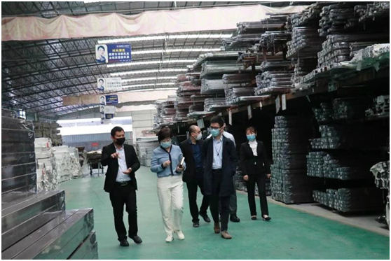 嘉賓們參觀德奧羅蘭全鋁家居型材倉儲和生產車間