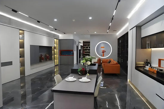 智能家居的普及為全鋁家居注入新活力。中幸全鋁整裝在浴室柜中嵌入感應(yīng)燈帶與無(wú)線充電模塊,柜體內(nèi)部配置紫外線殺菌系統(tǒng),將實(shí)用功能與科技體驗(yàn)深度融合。嘉斯頓家居更嘗試將全鋁材質(zhì)與智能家居系統(tǒng)聯(lián)動(dòng),用戶(hù)可通過(guò)手機(jī)APP調(diào)節(jié)櫥柜燈光色溫,實(shí)現(xiàn)“家居場(chǎng)景一鍵切換”。