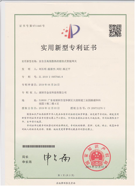 繼2019年12月初簡舒智能家居榮獲四項實用新型技術(shù)專利和一項計算機軟件著作權(quán),再次榮獲二項實用新型技術(shù)專利,分別是: