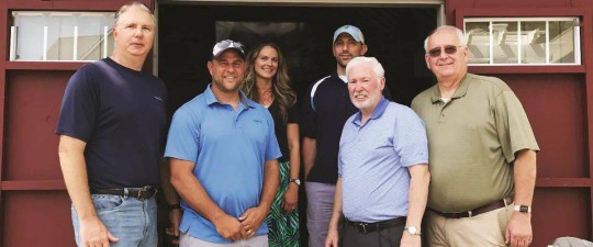 (從左到右):Brad Murphy, ASI Security; Tyler Gerry, owner at Torrison; Kelly Eddinger, sales at Torrison; Brian Murphy, landscape architect at Torrison; Jim Sweeney, Hometronics Lifestyles; and Sandy Duffy, Northeast Rep Agency。