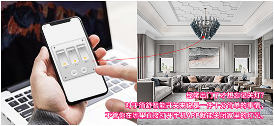 搭配簡舒的智能開關后,可不止是只能通過小度來語音控制家里的燈光哦,我們還可以用簡舒智家的手機APP來遠程控制家里的燈具哦,我們經(jīng)常上班出門了,走了很遠才想起來忘記關閉家里的燈光,導致浪費了很多電費,其實這個對于簡舒智能開關來說,也是一件十分簡單的事情,直接打開手機APP,就能遠程關閉你家里的燈光,不管是你已經(jīng)回到了公司,還是出遠門旅游,在全世界的各個角落,只要你的手機有網(wǎng)絡就能控制家中燈光的開關,手機APP也會24小時實時展示開關的狀態(tài),不用再擔心家里的燈光到底有沒有關閉,是不是瞬間就解決了你容易忘記關燈的煩惱,讓你的生活變得更加愉快?