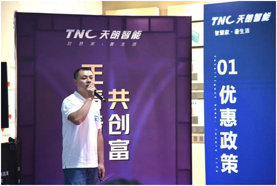會上,天朗智能還邀請了優秀客戶代表李總作分享。據了解,天朗智能還推出一系列活動幫扶、關系引流的新品政策,意在推動各大終端門店的進化升級,提高經銷商的利潤空間。