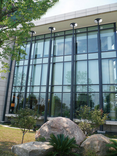 鋁木幕墻可以讓建筑物從不同角度呈現(xiàn)出各種色調(diào),整片外墻就像一面鏡子,將天空及周圍環(huán)境的景色映入其中,光線變化時,影像色彩斑斕、變化無窮,給人動態(tài)之美。同時鋁木幕墻也具備了輕巧美觀、不易污染、 節(jié)約能源等優(yōu)點(diǎn)。幕墻外層玻璃的里側(cè)涂有彩色的金屬鍍膜,從外觀上在光線的反射下,室內(nèi)不受強(qiáng)光照射,視覺柔和。它可吸收紅外線,減 少進(jìn)入室內(nèi)的太陽輻射,降低室內(nèi)溫度。