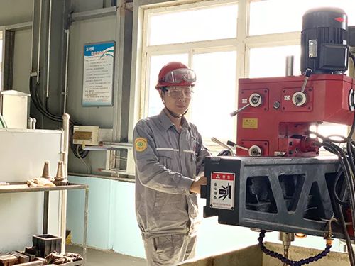 張曉聰于2016年加入東方希望晉中鋁業有限公司(簡稱:東方希望靈石鋁業)這個大家庭,所學專業是“數控技術”,對機器的手動操作不了解,在“榜樣、教師、教練”的企業文化中,進入車間后有師傅帶領學習,他日復一日的練習這些基本功,反復找感覺。他說:*開始要自己搬原料、調角度、打磨、劃線、確定打孔的位置,如果前期工作沒有做好,打出的孔就不在一條直線上,那么完成的成品也就達不到工件的使用標準。有時候在鉆床前一站就是4個小時,雖然這樣的工作枯燥乏味,他始終守住寂寞,竭盡全力練就了手感。在制作手中的這個消音器時,第 一步要去毛刺,否則會影響基準面,要想孔打得準,一定要劃線準,鉆頭挑選好。隨著工作的深入,這些技巧早已牢記于心,別人問他做得好的秘密時,他笑著說:“多做才行,熟能生巧。”