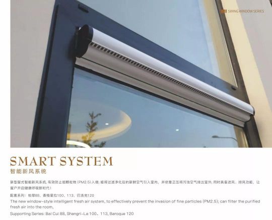 一些新豪軒鋁合金門窗產(chǎn)品還可以配備智能新風(fēng)系統(tǒng),可以有效防止微粒(PM2.5)的侵入,將過濾凈化后的新風(fēng)引入房間,并通過正壓將臟空氣排出房間,從而進(jìn)一步將室內(nèi)排風(fēng)中的冷熱與新風(fēng)進(jìn)行交換,降低新風(fēng)的冷熱能耗。