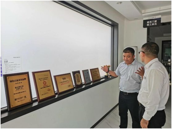2021年5月19日,佛山市門窗業協會戶誠秘書長帶著于2021年5月1日正式生效的T/FSTB 002-2021《室內鋁合金平開門》標準前往漢慕斯門窗企業進行標準宣貫工作。