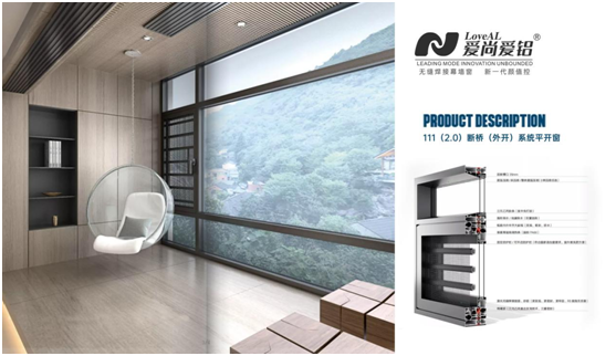 愛尚愛鋁111(2.0)斷橋(外開)系統平開窗,搭配隱形排水孔,選用20mm尼龍隔熱條,邊框寬度為111m,超窄的輪廓邊框設計,流暢的外觀協調線條,寬闊的大面積透明玻璃,大視野、大空間!以其時尚大氣的別致魅力,喚醒沉悶的家居空間,隨時隨地體驗180°全景式視野,能夠更好地欣賞“滿園春色”。
