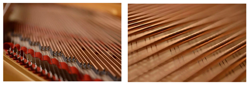 最好的金屬造就的聲音材料鋼琴使用的是最為優質的鋼絲,并且經過嚴格的質量把關制造成琴弦。低音區和中音區高度精密的吻合使琴弦良好共振。