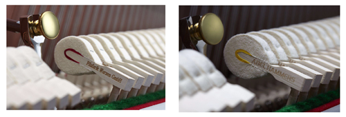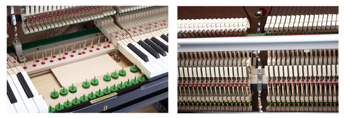 這是鋼琴真正的心臟,由6000 多個零部件構成,這些部分由木頭、皮革、毛氈和鋼制成。擊弦機是唯一能夠將制造者的技藝和藝術家的天賦相融合的部件。