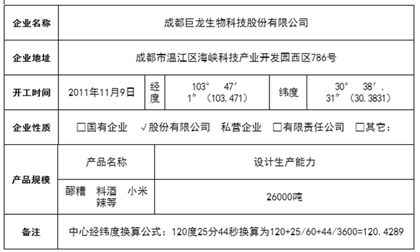 成都巨龍生物科技股份有限公司環(huán)保監(jiān)測數(shù)據(jù)如下:
