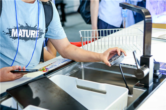 此次展會上,我們帶來的新款智能水槽洗碗機,也是黑科技滿滿,聚焦清洗細分。首先,它能智能識別碗盤的污濁等級,針對中式餐具臟污程度不一的特點,設置了6大洗滌模式,應對不同場景。其次,“分離式水流”凈水系統(tǒng),將自來水經(jīng)凈化處理分為超濾凈水、軟水,以及普通自來水,實現(xiàn)不同需求分質供水。軟水洗碗不留水漬,使餐具、瓷器光潔如新,并且軟水可以使油污分解效果更佳,從而減少使用洗滌劑,大大利于環(huán)保。