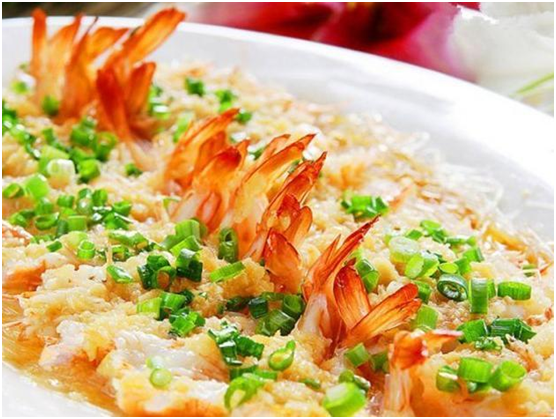 ·蒜蓉粉絲蒸大蝦:蒸蒸日上