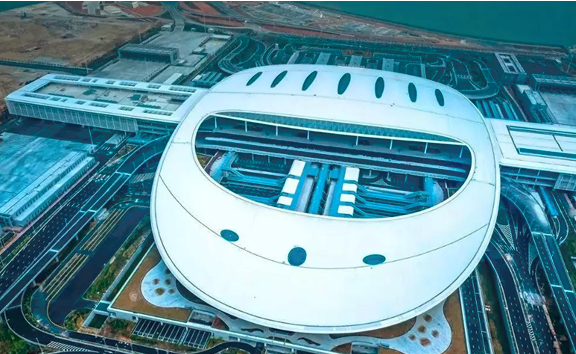 港珠澳大橋總長約55公里,它集橋、島、隧于一體。珠海公路口岸位于港珠澳大橋珠澳口岸人工島之上,是港珠澳大橋核心組成部分,總用地面積約107萬平方米,總建筑面積51萬平方米,是我國唯一的三地互通、客貨兼重的陸路口岸。項目于2013年12月31日正式開工,并于2017年9月30日實現“0”米層貫通。主要功能是對香港、澳門、珠海的出入境客、貨車及經三地過境的旅客進行通關查驗和旅客運輸。