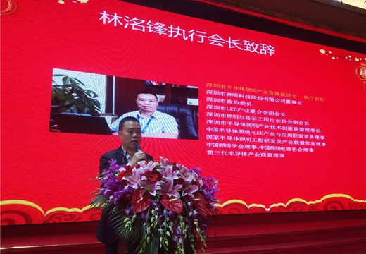 會上,由于深圳市半導體照明產業發展促進會會長吳思兵未能參會,暫由促進會執行會長、深圳市洲明科技董事長林洺鋒代為發言。他表示,自促進會成立以來,一直秉持“協助政府、服務企業、合作共贏、創新發展”的宗旨,積極發揮政府助手功能,服務會員企業,充分發揮“橋梁和紐帶”作用,促進深圳半導體照明產業健康有序發展。