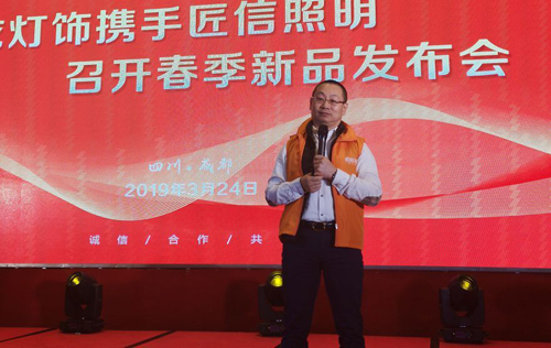 中國(guó)(五金)交電渠道聯(lián)盟秘書長(zhǎng)、匠信照明總經(jīng)理朱云波在會(huì)上分析了“四川的行政地位與價(jià)值”以說(shuō)明了四川市場(chǎng)的巨大潛力,同時(shí)還表示匠信照明是一家負(fù)責(zé)任、有品牌高度的照明企業(yè)。