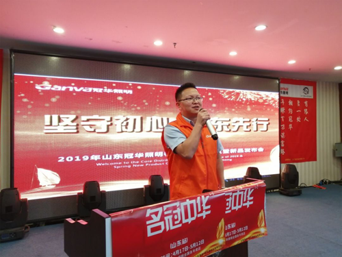 4月17日,以“堅守初心,山東先行”為主題的冠華照明山東經銷商會議暨新品發布會,在山東臨沂華美達酒店隆重舉行。冠華照明董事長余早生、山東運營中心總經理楊忠臣、營銷策劃副總王澤、營銷總監楊克承、產品總監李勇、大區經理王明振,實干家培訓講師韋煜坤,以及來自山東的經銷商出席了本次會議。
