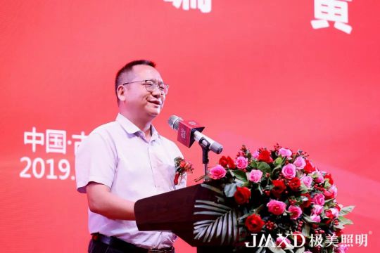 首先由極美照明總經理鄒榮文致辭,他在致辭中分享了六個關鍵詞:感恩、人才、產品、機遇、品牌、服務。