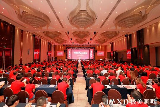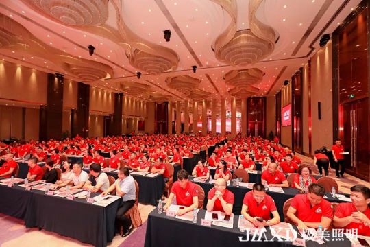 極美照明總經理鄒榮文,星光聯盟董事長區庚權,世界照明時報總編黃河,極美照明營銷總監李飛,市場總監曾德貴等領導和嘉賓,以及來自全國的極美照明優秀經銷商400余人共聚一堂。