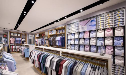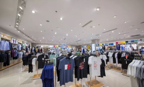 海瀾之家與紅豆的服飾陳列模式多種多樣,主要陳列模式有正掛,側掛,疊裝等,不同的陳列模式如果使有一種照明模式,將很難體現商品的特色。這時需要來自不同角度的燈光進行照明。在兩家專賣店燈光運用上,利用可調角度的射燈進行精準控光,將光投放在需要的地方,控制光照氛圍,以燈光的空間界定呈現出商品的節奏感,豐富視覺層次。
