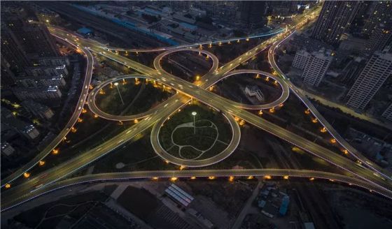 苜蓿葉形的解放路勝利路立交橋是蚌埠市一座重要的交通樞紐。亮化裝置了5000多套點光源勾勒出橋的外檐,像一顆顆彩色的珍珠,為解放路立交橋披上了一身靚麗的外衣。投光燈打亮橋墩,展現出勝利路立交橋磅礴的氣勢,成為城市夜景中一道特別的風景。