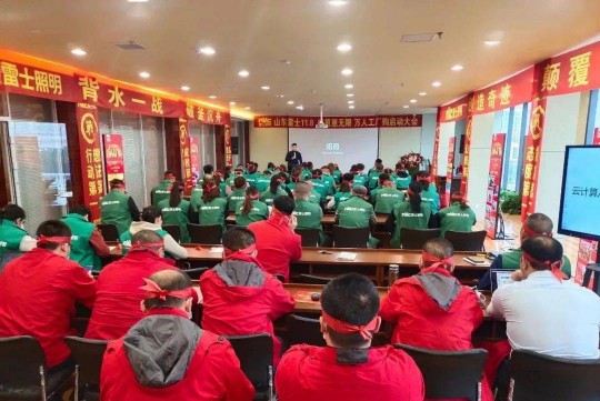 會(huì)上,雷士照明山東運(yùn)營(yíng)中心總裁劉治國(guó)對(duì)全體人員提出要求。其后,雷士家居主動(dòng)營(yíng)銷事業(yè)部總監(jiān)付林講解了雷士家居發(fā)展方向。雷士照明山東運(yùn)營(yíng)中心副總裁李沖做了“11月8日感恩惠無限工廠購”活動(dòng)方案及政策講解。雷士照明山東運(yùn)營(yíng)中心推廣培訓(xùn)部經(jīng)理兼主持人陳偉海組織召開各戰(zhàn)區(qū)誓師大會(huì)并簽訂軍令狀。雷士照明山東運(yùn)營(yíng)中心家居事業(yè)部總監(jiān)王文軍對(duì)第五屆工廠購活動(dòng)進(jìn)行總結(jié)等。