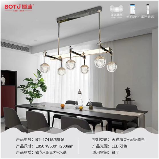 博途水晶燈聯(lián)合天貓精靈系統(tǒng),可語音智控和遠(yuǎn)程遙控,實(shí)現(xiàn)無極調(diào)控,隨心找到適合在客廳、臥房、書房、餐廳等地方的亮度和光色。