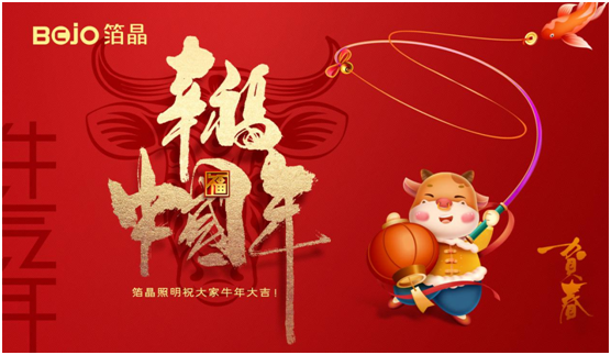 值此新春佳節來臨之際,BOJO箔晶照明全體同仁恭祝全國人們:新春快樂,吉祥如意,平安順利,團圓美滿!
