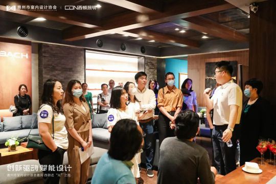 惠州市室內設計協會追“光”之旅,沙龍活動以“創新驅動 賦能設計”為主題,由惠州市室內設計協會主辦、惠州市西頓工業發展有限公司承辦、越來越好(惠州)智能科技有限公司協辦。參與本次交流活動的嘉賓有惠州市室內設計協會會長戴亮、秘書長黃長松、副會長林文科、楊則項、吳常聰、理事張志軍、陳日耿、柴小軒、朱浩勇等約50余位協會設計師成員、西頓照明首席品牌官徐長財、西頓照明首席燈光導師梁辰、越來越好(惠州)智能科技有限公司總經理楊昊、首席產品官王勇、及本地媒體代表西子家居?;顒觾x式由西頓推廣經理劉麗燕主持召開。