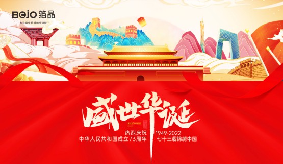 筑夢(mèng)燈火萬家,同慶盛世中華。箔晶智能照明以五星紅旗為信仰,在祖國(guó)73歲華誕來臨之際,祝愿祖國(guó)繁榮富強(qiáng)、國(guó)泰民安!