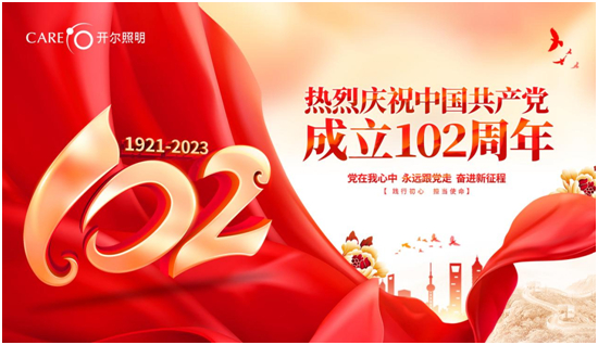 紅色光芒,綠色照明。建黨102周年,開爾照明傳承紅色基因,匠心臻品造福千家萬戶,努力滿足人們對美好生活的向往,為國家經濟建設貢獻力量!