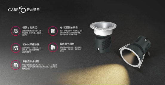 開爾選用西鐵城燈珠與科谷電源,從源頭確保每一盞燈的卓越性能。散熱性能是衡量燈具耐用度的關鍵指標。開爾M系列新品采用精工航空鋁材壓鑄,通過增強空氣對流設計,實現極速散熱,有效延長燈具的使用壽命,是科技與材料的完美融合。