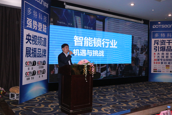 緊接著,本次會議特邀嘉賓中國智慧人居產業促進會秘書長陳軍先生上臺致辭,以“行業趨勢”為主題展開深入淺出的專題演講。陳秘書長表示:挑戰與機遇時刻伴隨著智能鎖行業的發展,多特若能做好產品,做好品牌,抓住機遇,迎難而上,必能成就不一樣的輝煌。同時,陳秘書長表示行業、組委會都對多特智能鎖寄予了厚望,希望多特能不負初心,再接再厲,為中國智能鎖行業做出更大的貢獻!