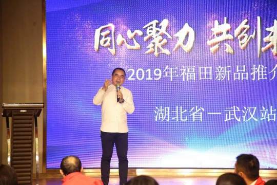 武漢福天發(fā)總經(jīng)理段總致詞,回首30年滿懷感言,面對未來更充滿期待。隨后,湖北大區(qū)經(jīng)理戴志平對福田電器2019年新產(chǎn)品做推介講解。