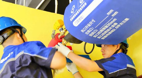 下午則由紐恩泰暖通工程師馮勛浩帶領學員學習風盤的認識與實操,學員們通過實操,掌握風盤接頭、風口帆布折疊、焊接、打沖擊鉆等技術。