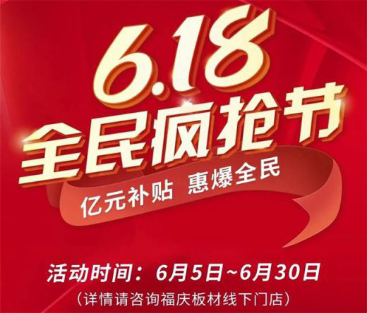 激情六月,福慶板材總部發起了“億元補貼,惠爆全民”活動。整合集團億元級資源,投入補貼終端經銷商,激發板材市場活力,順利完美收官。