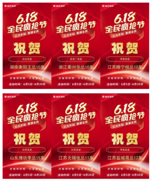 活動期間,福慶板材全國經銷商積極響應,尤其是其中的標桿代表們,主動貫徹落實實際行動,與公司形成統一戰線。結合各區域實際情況,積極主動下單預定,體現了對福慶品牌產品的強烈信任和支持,同時也反映了對于下半年市場積極增長的信心。