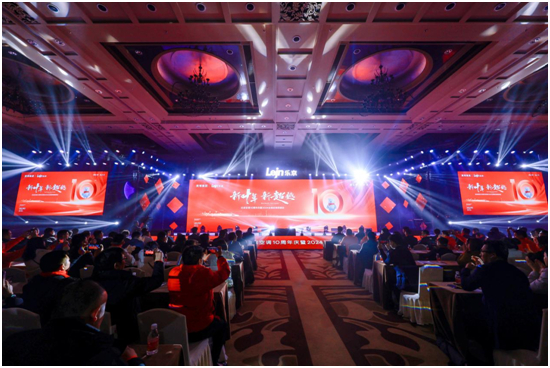 在眾人的矚目下,會場的燈光逐漸暗淡,隨即一場炫彩奪目的燈光秀震撼上演。燈光交織變換,如同樂京空調十年發展歷程的絢爛篇章。伴隨著倒計時的結束,一段精心制作的開場視頻呈現在大屏幕上,回顧了樂京空調十年來的重要時刻和輝煌成就。