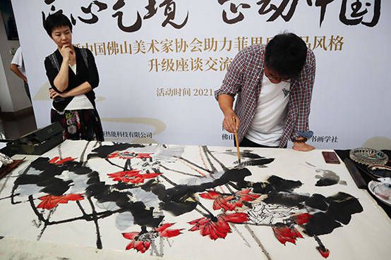 活動(dòng)現(xiàn)場(chǎng),藝術(shù)家們不僅參與產(chǎn)品設(shè)計(jì)交流,還紛紛潑墨揮毫,作畫題詞,現(xiàn)場(chǎng)贈(zèng)送留念。