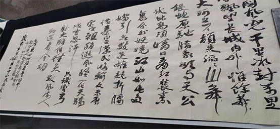 書法家武多義教授作品:《沁園春雪》筆鋒春秋、行云流水、落筆如云煙的境界在書法家武多義書寫的《沁園春雪》作品中表現(xiàn)的淋漓盡致,字勢(shì)如驍將劍走大漠孤煙,氣勢(shì)恢宏蒼勁。武教授題詞祝菲思盾董事長黃愛明:古看唐宗宋祖,一代天驕成吉思汗;今看黃愛明先生馳騁商海季云帆,彎弓射大雕數(shù)風(fēng)流人物,還看今朝。
