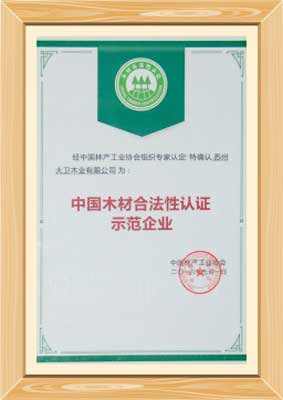 大衛(wèi)榮獲中國木材合法性認(rèn)證示范企業(yè)