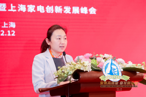 上海市民政局(上海市社會組織管理局)社團管理處副處長姜琦發表致辭,她勉勵上海家電人深入研究百姓需求,提升企業需求捕捉力、產品創新力、品牌影響力以及核心競爭力,以國之大者的情懷,強化企業責任,加強標準建設,引領行業高質量發展。