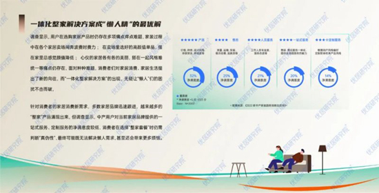 針對消費者的家居消費新需求,多數家居品牌迅速跟進,越來越多的“整家”產品涌現出來,但調查顯示,中產用戶對當前家居品牌提供的一站式服務、定制服務的凈滿意度較低,消費者在選擇“整家套餐”時仍需判斷“真偽性”,最終可能既無法解決懶人需求,甚至還會帶來更多煩惱。
