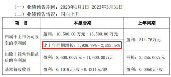 從漲幅上看,長虹美菱名列前茅,公司預計一季度歸屬于上市公司股東的凈利潤1.05億元至1.35億元,同比增長1940%至2523%。