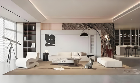 近年來,極簡主義一直是家居設計的熱門趨勢。然而,2024年的極簡風不再局限于冷硬的線條與色調,而是融入了更多溫暖的元素與柔和的色彩,如奶油白、淺米色、木紋等。這種新奢華風格強調質感而非繁復裝飾,通過簡潔設計與高端材質的巧妙結合,營造出簡約而不失奢華的居住空間。例如,選用紋理獨特的大理石餐桌搭配金屬線條吊燈,既體現了簡約美學,又彰顯了奢華品質。